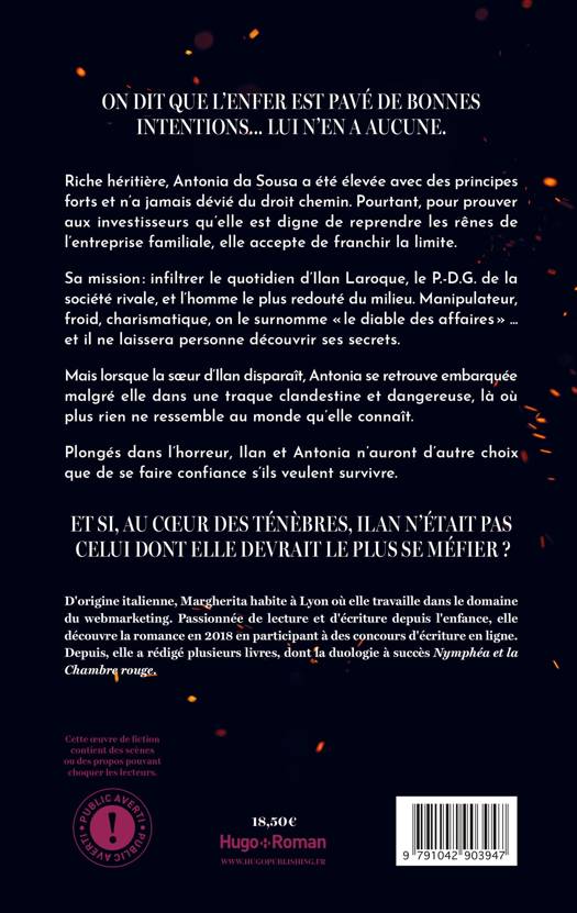Sa mission : infiltrer le quotidien d’Ilan Laroque, le P. -D.G. de la société rivale, et l’homme le plus redouté du milieu. Manipulateur, froid, charismatique, on le surnomme « le diable des affaires » ... et il ne laissera personne découvrir ses secrets.