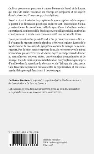 Ce livre propose un parcours, à travers l’œuvre de Freud et de Lacan, qui tente de saisir l’évolution du concept de symptôme et ses enjeux dans la direction d’une cure psychanalytique. Freud a eu le génie de sortir le symptôme de son acception médicale pour le porter à sa dimension psychique en inventant le concept inédit de l’inconscient qui en a fait un message chiffré de la vérité d’un sujet. Cependant, il s’est heurté dans sa longue pratique à son impossible éradication, l’obligeant à admettre au cœur de la psyché humaine, l’impensable pulsion de mort. La relecture serrée opérée par Lacan des élaborations freudiennes à la lumière de la structure de « parlêtre » qui fait la singularité de l’humain, l’a conduit à ce qu’on pourrait appeler une réhabilitation du symptôme. Son invention du Réel, dimension inédite qui est « l’Autre radical du sens », amène Lacan à un retournement de la visée de l’interprétation. Jusque-là, l’interprétation essayait de rendre son sens au symptôme visant une vérité en gésine, alors qu’ici, l’interprétation vise à faire perdre du sens au symptôme pour le rendre à ce qu’il est, en son fond, du pur Réel, la seule chose qui assure au sujet de ne pas se réduire au symbolique.