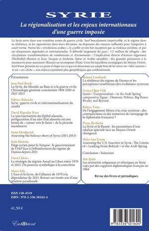 La Syrie entre dans une troisième année de guerre civile. Parmi les "révolutions arabes", le conflit syrien fait exception par sa violence extrême et par ses dimensions régionales et internationales. Il déborde largement du pays : 1,5 million de réfugiés, des circulations transfrontalières de combattants et d'armements, l'implication directe d'acteurs régionaux, des grandes puissances qui tentent de maintenir les équilibres stratégiques du Moyen-Orient.