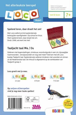 Oefenen met tegenstellingen, vraagzinnen, woordvolgorde in een zin, bijvoeglijke naamwoorden, verwijswoorden en nog veel meer. Spelenderwijs oefenen kinderen met de Nederlandse taal. De inhoud van Loco maxi Taaljacht Taal is afgestemd op de oefenstof van groep 4 en sluit aan bij de methode Taaljacht. Loco maxi Taaljacht Taal is ook te gebruiken naast andere taalmethodes, omdat de leerlijnen taal uit de kerndoelen worden gevolgd. Zijn de opdrachten goed gemaakt? Kinderen draaien de basisdoos om, controleren het figuur en ze weten het. Op jacht naar taal met Loco!