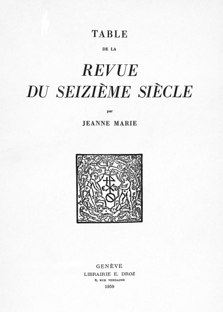 Fondée en 1950 par Eugénie Droz, la collection des Travaux d'Humanisme et Renaissance a réuni, en soixante-cinq ans, plus de 550 titres. Elle s'est imposée comme la collection la plus importante au monde de sources et d’études sur l'Humanisme (Politien, Ficin, Erasme, Budé...), la Réforme francophone (Lefèvre d'Etaples, Calvin, Farel, Bèze...), la Renaissance (littéraire et artistique, Jérôme Bosch ou Rabelais, Ronsard ou le Primatice...), mais aussi la médecine, les sciences, la philosophie, l'histoire du livre et toutes les formes de savoir et d’activité humaine d’un long XVIe siècle, des environs de 1450 jusqu’à la mort du roi Henri IV, seuil de l'âge classique. Les Travaux d'Humanisme et Renaissance sont le navire-amiral des éditions Droz.