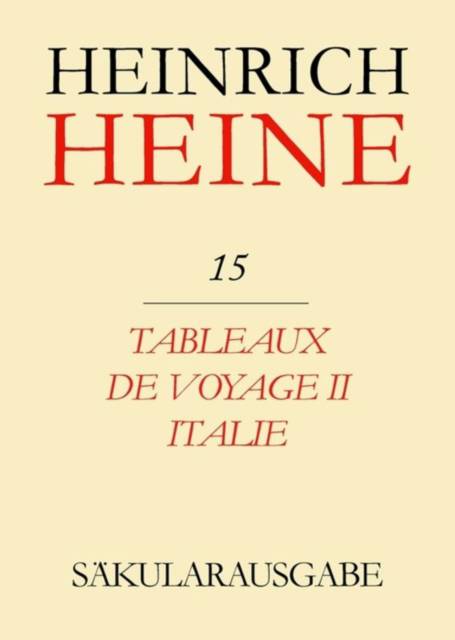 Für die Heine-Säkularausgabe musste eine Entscheidung bezüglich der chronologischen Anordnung getroffen werden. Gewählt wurde eine Anordnung, die zusammengehörige Werkkomplexe, zum Beispiel die Prosateile der "Reisebilder" oder die "Lutezia", als selbständige Bandeinheiten begreift. Ähnlich wie Heine selbst in der Ausgabe seiner französischsprachigen Werke bestimmte, werden in der Säkularausgabe gleichzeitig entstandene Texte nach inhaltlicher Übereinstimmung zusammengefast, so das sich eine leicht zu überschauende Anordnung des Gesamtwerkes ergibt.Band 15 enthält die Tableaux de Voyage II-Italie mit "Voyage de Munich ä Gönes", "Les bains de Lucques", "La