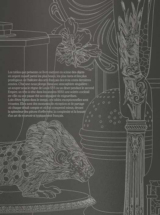 Les tables que présente ce livre mettent en scène des objets en argent massif parmi les plus beaux, les plus rares et les plus prestigieux de l’histoire des arts français des trois cents dernières années. Chacune nous plonge dans une atmosphère singulière : un souper sous le règne de Louis XVI ou un dîner pendant le second Empire, un tête-à-tête dans les années 1930, une soirée-cocktail en ville ou une pause thé accompagné de mignardises. Loin d’être figées dans le temps, ces tables exceptionnelles sont vivantes. Elles sont des moments de réception et de partage où chaque détail compte et où l’on comprend mieux, devant la splendeur des pièces d’orfèvrerie, la complexité et la beauté d’un art de recevoir si typiquement français.