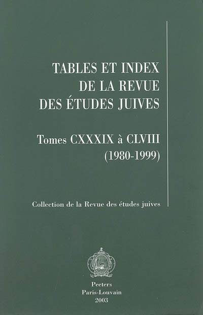 Comprend, pour les quarante livraisons parues entre 1980 et 1999, des tables par annees, des tables des auteurs, les theses routenues recemment, des auteurs dont les livres ont ete recenses, un index thematique, un index des manuscrits, ainsi que des tables et un index des illustrations. Une breve introduction en facilite le maniement et dresse un historique rapide de ces vingt ans de la Revue, dont les point forts sont demeures dans le periode l'Antiquite tardive, le moyen age et les temps modernes consideres du point de vue de l'histoire des litteratures juives comme de celui de l'histoire materielle et sociale des juifs, avec de tres riches rubriques bibliographiques qui couvrent aussi la periode contemporaine.