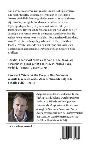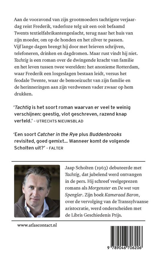 Maar rust vindt hij niet. 'Tachtig' is een roman over de dwingende kracht van familie en het leven tussen twee werelden: het anonieme Rotterdam, waar Frederik een losgeslagen bestaan leidt, versus het feodale Twente, waar de bemoeizucht van zijn familie en de herinneringen aan zijn verdwenen vader zwaar op hem drukken.