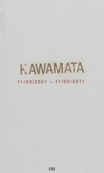 Cabanes accrochées à la façade du Centre Pompidou, tour participative de plus de 20 mètres échafaudée dans le parc de la Villette, passerelles et ponts inachevés à Bordeaux ou ailleurs, Tadashi Kawamata, artiste japonais établi à Paris et Tokyo, élabore dans ses œuvres, monumentales et éphémères, faites de matériaux de récupération, une esthétique de la destruction, de la catastrophe, de l'équilibre instable. Dans l'ouvrage au titre évocateur 11/09/2001 - 11/03/2011, l'artiste, compile, à la manière d'un album souvenir, des photographies extraites d'articles de journaux relatant catastrophes naturelles, attentats ou accidents. Il en repousse l'aspect tragique pour n'en conserver que l'esthétique qui l'inspire, évoquant tout comme son travail, la fragilité des constructions, l'éphémère de la vie, l'instabilité. Ouvrage à la fois dérangeant et fascinant.