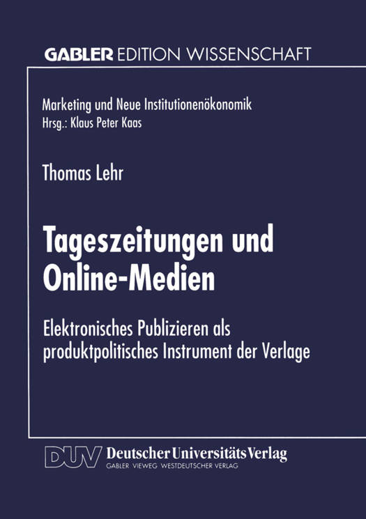 Zeitungsverlage gehören zu den Unternehmen, deren Produkte und Märkte am unmittel barsten und augenfalligsten durch die digitale Informationstechnologie verändert werden. Thomas Lehr untersucht in seiner Arbeit die Frage, ob und inwieweit die traditionelle Tages zeitung in der Zukunft durch elektronische Formen der Informationsübermittlung ersetzt oder ergänzt wird und welche Konsequenzen sich daraus fur das strategische und operative Geschäft der Verlage ergeben. Die Arbeit enthält zahlreiche Informationen über den derzeitigen Stand des elektronischen Publizierens von Tageszeitungen, sie bietet eine umfassende theoretische Analyse der Akzeptanz von Online-Tageszeitungen, sie stützt sich auf die Ergebnisse einer Befragung von Zeitungslesern zu diesem Thema, und sie gibt praktische Ratschläge fur das Marketing von Online-Tageszeitungen. Wer sich über die Entwicklung dieses neuen Informationsmarktes informieren möchte, findet in der Arbeit viele Daten über die technischen und organisatorischen Ausgestaltungsformen von Tageszeitungen im Internet, über die institutionellen Arrangements von Kooperationen der Verlage, über die ökonomischen Rahmenbedingungen der Informationsmärkte, über den Stand der Nutzung multimedialer Angebote in Deutschland, über die Diffusion der fur die Nutzung erforderlichen Hard- und Software, über die Kosten des elektronischen Publizierens, über den Zusammenhang zwischen Nutzerzahlen, Verkaufserlösen und Werbeeinnahmen, um nur die wichtigsten zu nennen.
