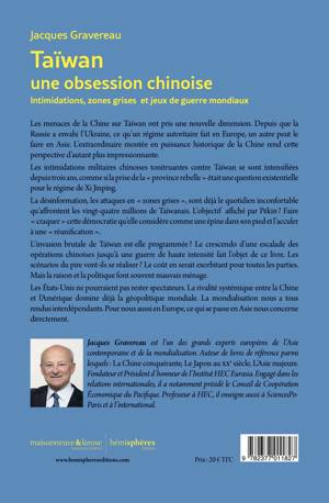 Les menaces de la Chine sur Taïwan ont pris une nouvelle dimension. Depuis que la Russie a envahi l’Ukraine, ce qu’un régime autoritaire fait en Europe, un autre peut le faire en Asie. L’extraordinaire montée en puissance historique de la Chine rend cette perspective d’autant plus impressionnante. Les intimidations militaires chinoises tonitruantes contre Taïwan se sont intensifiées depuis trois ans, comme si la prise de la « province rebelle » était une question existentielle pour le régime de Xi Jinping. La désinformation, les attaques en « zones grises », sont déjà le quotidien inconfortable qu’affrontent les vingt-quatre millions de Taïwanais. L’objectif affiché par Pékin ? Faire « craquer » cette démocratie qu’elle considère comme une épine dans son pied et l’acculer à une « réunification ». L’invasion brutale de Taïwan est-elle programmée? Le crescendo d’une escalade des opérations chinoises jusqu’à une guerre de haute intensité fait l’objet de ce livre. Les scénarios du pire vont-ils se réaliser ? Le coût en serait exorbitant pour toutes les parties. Mais la raison et la politique font souvent mauvais ménage. Les États-Unis ne pourraient pas rester spectateurs. La rivalité systémique entre la Chine et l’Amérique domine déjà la géopolitique mondiale. La mondialisation nous a tous rendus interdépendants. Pour nous aussi en Europe, ce qui se passe en Asie nous concerne directement.