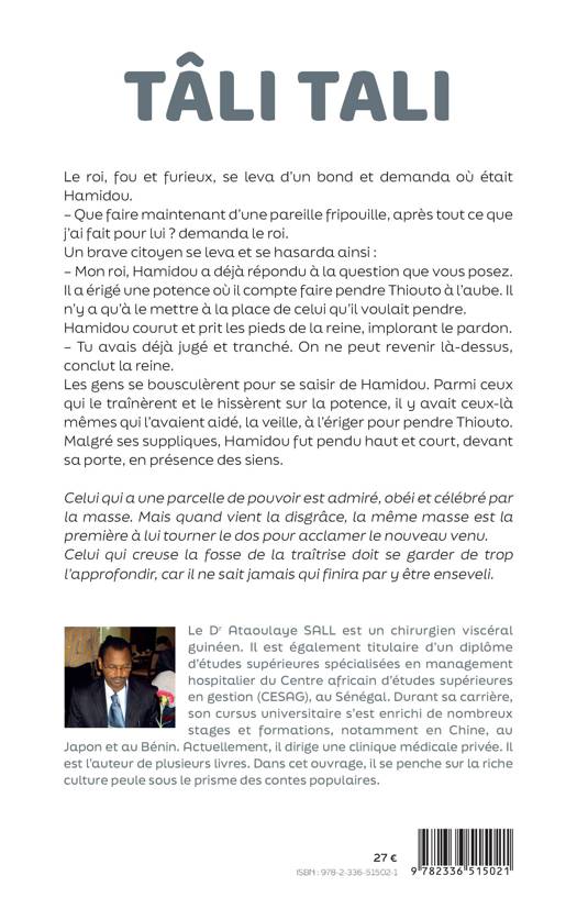 En Guinée, il existe des milliers de contes, encore transmis de bouche à oreille, et qui tardent à être transcrits pour être sauvegardés et mieux légués à la postérité. Certains sont très connus, d'autres le sont moins. Tâli tali est un recueil de dix-sept contes populaires peuls abondamment illustrés, porteurs de conseils de vie. Le lecteur y retrouvera aussi bien des contes merveilleux que des contes d'avertissement.