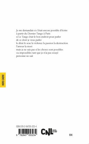 Un poème théâtral dans lequel l'autrice décrypte les mécanismes d'asservissement des femmes à travers le film Le dernier tango à Paris, interprété notamment par Maria Schneider et Marlon Brando.