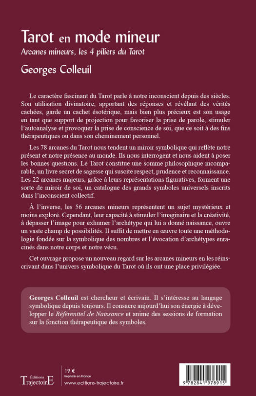 Le caractère fascinant du Tarot parle à notre inconscient depuis des siècles. Son utilisation divinatoire, apportant des réponses et révélant des vérités cachées, garde un cachet ésotérique, mais bien plus précieux est son usage en tant que support de projection pour favoriser la prise de parole, stimuler l’autoanalyse et provoquer la prise de conscience de soi, que ce soit à des fins thérapeutiques ou dans son cheminement personnel. Les 78 arcanes du Tarot nous interrogent et nous aident à poser les bonnes questions. Les 22 arcanes majeurs, grâce à leurs représentations figuratives, forment une sorte de miroir de soi. À l’inverse, les 56 arcanes mineurs représentent un sujet mystérieux et moins exploré. Cependant, leur capacité à stimuler l’imaginaire et la créativité, à dépasser l’image pour exhumer l’archétype qui lui a donné naissance, ouvre un vaste champ de possibilités. Il suffit de mettre en œuvre toute une méthodologie fondée sur la symbolique des nombres et l’évocation d’archétypes enracinés dans notre corps et notre vécu. Cet ouvrage propose un nouveau regard sur les arcanes mineurs en les réinscrivant dans l’univers symbolique du Tarot où ils ont une place privilégiée.