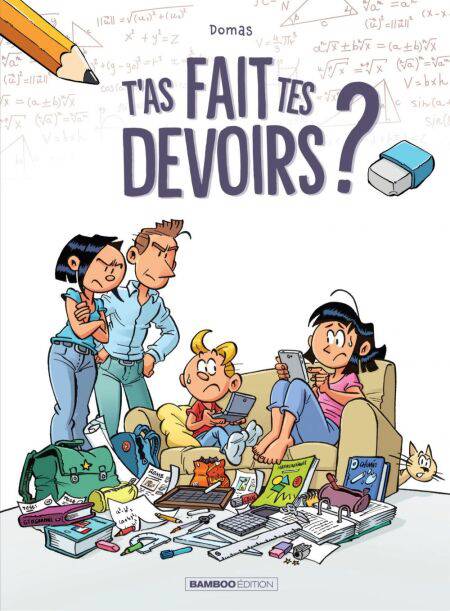 Le plus dur dans les devoirs, c’est de s’y mettre ! Les parents de Lola et Tom ont bien des soucis. L’aînée est au collège, le cadet en primaire, et le soir, c’est toujours le même rituel : il faut faire les devoirs ! Chacun y va de sa stratégie pour réussir à retenir une leçon d’anglais, de son petit truc pour résoudre une équation… ou de la meilleure façon de les expédier au plus vite. Heureusement, ils peuvent compter sur les grands-parents. Il faut dire que pépé Louis était un as à l’école… buissonnière ! Plein de bons conseils, d’astuces et de fous rires (et pas que dans les marges), cet album mettra de la bonne humeur dans les cahiers d’exercices et rendra les leçons bien plus faciles à apprendre. Les parents vont enfin faire (ou faire faire) les devoirs avec le sourire !