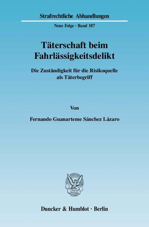 Die Vereinfachung der Zurechnungserfordernisse im Fahrlässigkeitsbereich, welche die herrschende Meinung durch das Einheitstätersystem vorschlägt, ist in letzter Zeit immer häufiger auf Kritik gestoßen. Mit Hinblick auf die Missachtung der materiellen Bedeutung von fahrlässigen Verhaltensweisen sowie ihre undifferenzierten Zurechnungsergebnisse erscheint es nur noch eine Frage der Zeit, bis auch beim Fahrlässigkeitsdelikt der Begriff des Einheitstäters überwunden sein wird. Gegen den von der herrschenden Meinung vorgeschlagenen Lösungsweg werden verschiedene restriktive Ansichten in der Lehre vertreten. Fernando Guanarteme Sánchez Lázaro setzt sich mit diesen restriktiven Lösungen auseinander. Dabei schlägt er folgenden einheitlich restriktiven Täterbegriff vor: Die Zuständigkeit für die Risikoquelle. Dieses normative Kriterium wird im Verlauf der Monographie zunehmend konkretisiert, indem es nacheinander für die unmittelbare Alleintäterschaft, mittelbare Täterschaft und Mittäterschaft durchdekliniert wird. Auf diesem Weg schlägt der Autor unter anderem eine problemorientierte Entwicklung der mittelbaren Täterschaft sowie unterschiedliche mögliche normative tatbestandliche Strukturen für die Mittäterschaft zur Diskussion vor.