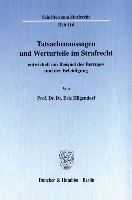 186, 187 StGB auf, im Bürgerlichen Recht wird es etwa im Rahmen von 123 BGB und 824 BGB und im öffentlichen Recht vor allem bei der Auslegung von Artikel 5 Abs. 1 GG relevant. Auch für die Rechtstheorie und Rechtsphilosophie ist die Abgrenzung zwischen Tatsachenaussagen und Werturteilen von großer Bedeutung. Umso bemerkenswerter ist die Tatsache, daß bis heute keine umfassende monographische Aufarbeitung des Themas existiert. Hilgendorfs Arbeit soll diese Lücke schließen.