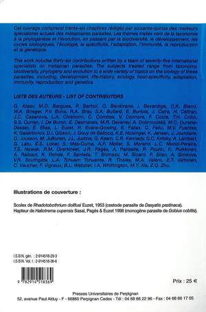 L'ouvrage est une mise au point sur la biologie des métazoaires parasites, sous la plume des meilleurs spécialistes mondiaux actuels. Les chapitres traitent de taxonomie (description d'espèces, classification), d'écologie (cycles biologiques, processus de transmission spécificité parasitaire, interactions parasites-hôtes, échanges de signaux, communautés), d'évolution (adaptation, mécanismes de la reproduction, phylogénie, génomes, biodiversité). Les modèles d'études vont des trématodes (Schistosoma, Fasciola, etc.) aux crustacés, en passant par les monogènes, les cestodes et les nématodes.