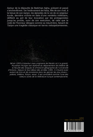 Autour de la dépouille de Bedirhan Agha, présent et passé s´enchevêtrent. De l´enlèvement de Fasla, fille de son rival, à la tenue de son taziye, les épisodes de la vie de ce seigneur kurde, dernière victime en date d´une vendetta millénaire, défilent au gré de leur évocation par les protagonistes jusqu´au procès, suivi de son exécution, de celle que le code de l´honneur désigne comme sa meurtrière, faisant de Taziye une tragédie classique en terres mésopotamiennes.