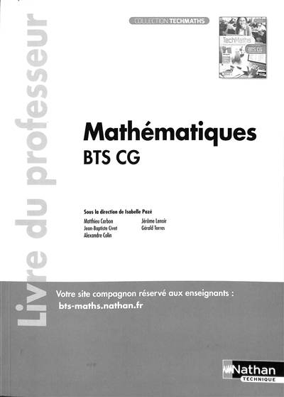 Le livre du professeur de Mathématiques BTS CG 1ère et 2ème années propose tous les corrigés.