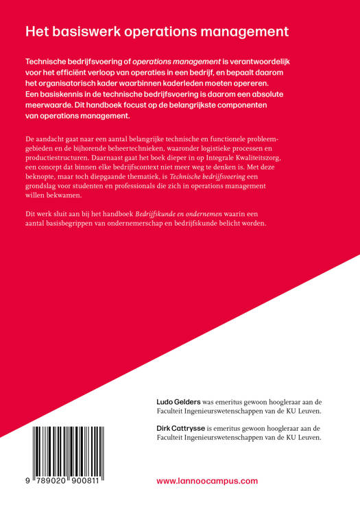 Technische bedrijfsvoering of operations management is verantwoordelijk voor het efficiënt verloop van operaties in een bedrijf, en bepaalt daarom het organisatorisch kader waarbinnen kaderleden moeten opereren. Een basiskennis in de technische bedrijfsvoering is daarom een absolute meerwaarde. Dit handboek focust op de belangrijkste componenten van operations management. De aandacht gaat naar een aantal belangrijke technische en functionele probleemgebieden en de bijhorende beheertechnieken, waaronder logistieke processen en productiestructuren. Daarnaast gaat het boek dieper in op Integrale Kwaliteitszorg, een concept dat binnen elke bedrijfscontext niet meer weg te denken is. Met deze beknopte, maar toch diepgaande thematiek, is Technische bedrijfsvoering een grondslag voor studenten en professionals die zich in operations management willen bekwamen. Dit werk sluit aan bij het handboek Bedrijfskunde en ondernemen waarin een aantal basisbegrippen van ondernemerschap en bedrijfskunde belicht worden.