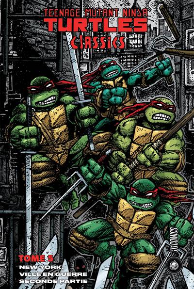Ce tome regroupe les issues 56 à 62 publiées par Mirage Studios avec la poursuite et la conclusion de l'arc épique New York, Ville en guerre. Avec plus de 180 pages d'action d'arts martiaux et des annotations à la suite de chaque issue, ce volume est parfait pour les fans qui souhaitent revivre l'aventure aux côtés des Tortues de Peter Laird et Kevin Eastman, et pour les nouveaux lecteurs qui veulent découvrir où le phénomène a commencé.