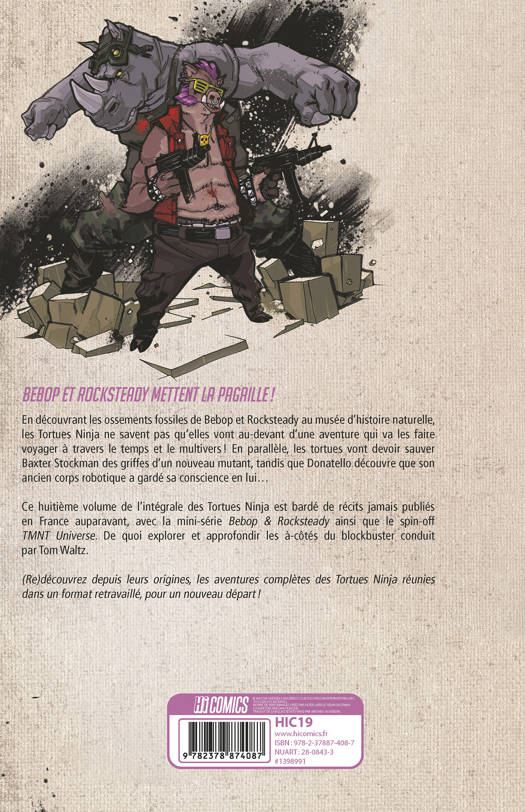 Ce huitième volume de l'intégrale des Tortues Ninja est bardé de récits jamais publiés en France auparavant, avec la mini-série Bebop & Rocksteady ainsi que le spin-off TMNT Universe. De quoi explorer et approfondir les à-côtés du blockbuster conduit par Tom Waltz.
