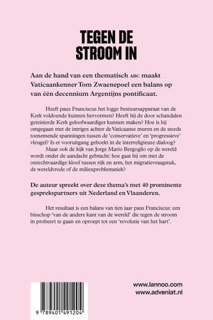 Aan de hand van een thematisch ABC maakt Vaticaankenner Tom Zwaenepoel een balans op van één decennium Argentijns pontificaat. Heeft paus Franciscus het logge bestuursapparaat van de Kerk voldoende kunnen hervormen? Heeft hij de door schandalen geteisterde Kerk geloofwaardiger kunnen maken? Hoe is hij omgegaan met de intriges achter de Vaticaanse muren en de steeds toenemende spanningen tussen de 'conservatieve' en 'progressieve' vleugel? Is er vooruitgang geboekt in de interreligieuze dialoog? Maar ook de kijk van Jorge Mario Bergoglio op de wereld wordt onder de aandacht gebracht: hoe gaat hij om met de onrechtvaardige kloof tussen rijk en arm, het migratievraagstuk, de wereldvrede of de milieuproblematiek? De auteur spreekt over deze thema's met 40 prominente gesprekspartners uit Nederland en Vlaanderen. Het resultaat is een balans van tien jaar paus Franciscus: een bisschop 'van de andere kant van de wereld' die tegen de stroom in probeert te gaan en oproept tot een 'revolutie van het hart'.