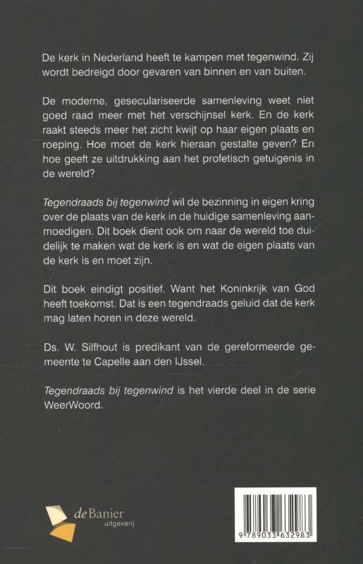 De plaats van de kerk in een seculiere samenleving De moderne. geseculariseerde samenleving weet niet goed raad meer met het verschijnsel kerk en de kerk raakt steeds meer het zicht kwijt op haar eigen plaats en roeping. Hoe moet de kerk hieraan gestalte geven? En hoe geeft ze uitdrukking aan het profetisch getuigenis in de wereld? Tegendraads bij tegenwind wil de bezinning in eigen kring over de plaats van de kerk in de huidige samenleving aanmoedigen. Dit boek dient ook om naar de wereld toe duidelijk te maken wat de kerk is en wat de eigen plaats van de kerk is en moet zijn.