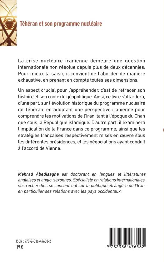 La crise nucléaire iranienne demeure une question internationale non résolue depuis plus de deux décennies. Pour mieux la saisir, il convient de l'aborder de manière exhaustive, en prenant en compte toutes ses dimensions. Un aspect crucial pour l'appréhender, c'est de retracer son histoire et son contexte géopolitique. Ainsi, ce livre s'attardera, d'une part, sur l'évolution historique du programme nucléaire de Téhéran, en adoptant une perspective iranienne pour comprendre les motivations de l'Iran, tant à l'époque du Chah que sous la République islamique. D'autre part, il examinera l'implication de la France dans ce programme, ainsi que les stratégies françaises respectivement mises en oeuvre sous les différentes présidences, et les négociations ayant conduit à l'accord de Vienne.