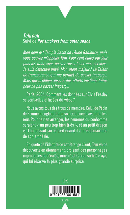 Mon nom est Temple Sacré de l'Aube Radieuse, mais vous pouvez m'appeler Tem. Pour cent euros par jour plus les frais, vous pouvez aussi louer mes services. Je suis détective privé. Mon atout majeur ? Le Talent de transparence qui me permet de passer inapercu. Mais qui m'oblige aussi à des efforts vestimentaires pour ne pas passer inaperçu.