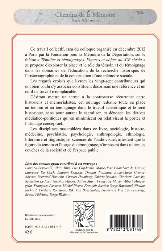 Ce travail collectif se propose d'explorer la place et le rôle du témoin et du témoignage dans les domaines de l'éducation, de la recherche historique, de l'historiographie et de la construction d'une mémoire sociale. Désirant mettre un terme à la controverse entre historiens et mémorialistes, cet ouvrage reconsidère leur importance dans le travail scientifique et le récit historique. Les disciplines rassemblées dans ce livre attestent que la figure du témoin et l'usage du témoignage s'imposent dans toutes les couches de la société et de l'espace public.