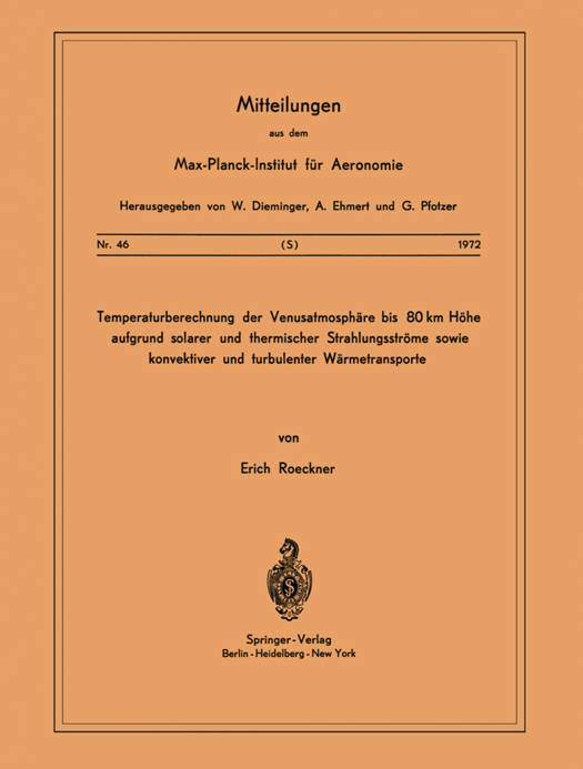 Temperaturberechnung Der Venusatmosphäre Bis 80 Km Höhe Aufgrund Solarer Und Thermischer Strahlungsströme Sowie Konvektiver Und Turbulenter Wärmetransporte