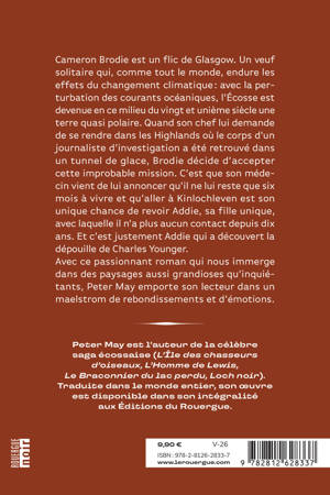 Cameron Brodie est un flic de Glasgow. Un veuf solitaire qui, comme tout le monde, endure les effets du changement climatique : avec la perturbation des courants océaniques, l'Écosse est devenue en ce milieu du vingt et unième siècle une terre quasi polaire. Quand son chef lui demande de se rendre dans les Highlands où le corps d'un journaliste d'investigation a été retrouvé dans un tunnel de glace, Brodie décide d'accepter cette improbable mission. C'est que son médecin vient de lui annoncer qu'il ne lui reste que six mois à vivre et qu'aller à Kinlochleven est son unique chance de revoir Addie, sa fille unique, avec laquelle il n'a plus aucun contact depuis dix ans. Et c'est justement Addie qui a découvert la dépouille de Charles Younger. Avec ce passionnant roman qui nous immerge dans des paysages aussi grandioses qu'inquiétants, Peter May emporte son lecteur dans un maelstrom de rebondissements et d'émotions.