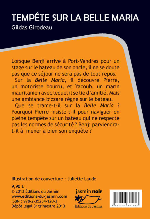 Lorsque Benji arrive à Port-Vendres pour faire son stage embarqué sur le bateau de son oncle, il ne se doute pas que ce séjour ne sera pas de tout repos. Sur la Belle Maria, il découvre Pierre, un motoriste bourru, et Yacoub, un marin mauritanien avec lequel il se lie d’amitié. Mais une ambiance bizzare règne sur le bateau. Benji sent qu’il se trame quelque chose de louche, qu’il ne parvient pas à identifier. Pourquoi Pierre insiste-t-il pour naviguer en pleine tempête sur un bateau qui ne respecte pas les normes de sécurité ? Yacoub s’est-il vraiment noyé par accident ? Aidé de Cheïkha, la fille de Yacoub, Benji parviendra-t-il à mener à bien son enquête ?