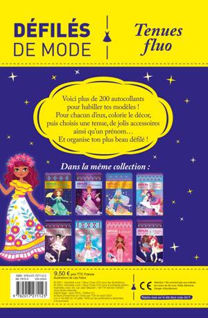 Un bloc à spirale avec 21 silhouettes à habiller grâce à 7 planches d'autocollants avec des détails fluo, 1 planche de stickers accessoires et 2 planches de strass. Thématique : tenues de tous les jours et de soirée fluo !