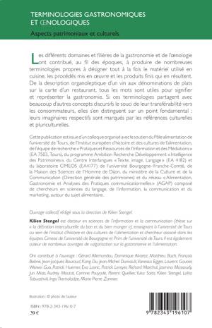 Les différents domaines et filières de la gastronomie et de l'nologie ont contribué, au fil des époques, à produire de nombreuses terminologies propres à désigner tout à la fois le matériel utilisé en cuisine, les procédés mis en uvre et les produits finis qui en résultent. De la description organoleptique d'un vin aux dénominations de plats sur la carte d'un restaurant, tous les mots sont utiles pour signifier et représenter la gastronomie.