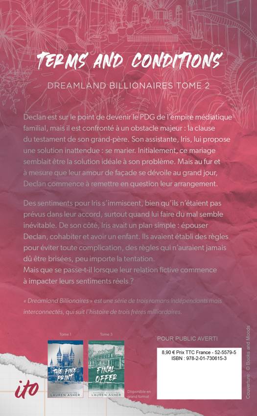 Declan est sur le point de devenir le PDG de l’empire médiatique familial, mais il est confronté à un obstacle majeur : la clause du testament de son grand-père. Son assistante, Iris, lui propose une solution inattendue : se marier. Initialement, ce mariage semblait être la solution idéale à son problème. Mais au fur et à mesure que leur amour de façade se dévoile au grand jour, Declan commence à remettre en question leur arrangement. Des sentiments pour Iris s’immiscent, bien qu’ils n’étaient pas prévus dans leur accord, surtout quand faire du mal à Iris semble inévitable. De son côté, Iris avait un plan simple : épouser Declan, cohabiter et avoir un enfant. Ils avaient établi des règles pour éviter toute complication, des règles qui n’auraient jamais dû être brisées, peu importe la tentation. Mais que se passe-t-il lorsque leur relation fictive commence à impacter leurs sentiments réels ? L’amour n’était jamais supposé faire partie du jeu.