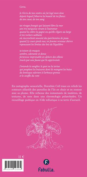 En cartographe sensorielle, Dorothée Coll trace en reliefs les contours olfactifs des parcelles de l’île de la Corse en chair et en osmose avec sa plume. Elle reSense des instantanés de matières, de textures, de sons dans une chromologie polarohydre. Un recueillage poétique en iOde tellurique à sa terre d’accueil.