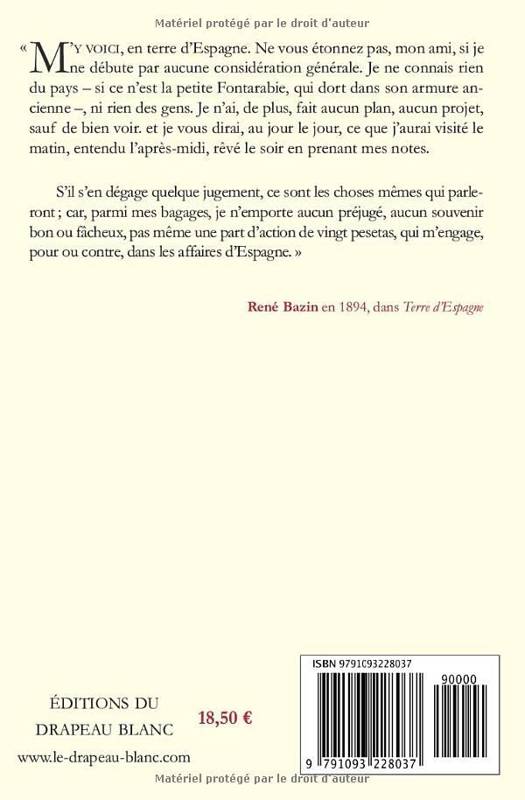 M'y voici, en terre d'Espagne. Ne vous étonnez pas, mon ami, si je ne débute par aucune considération générale. Je ne connais rien du pays - si ce n'est la petite Fontarabie, qui dort dans son armure ancienne -, ni rien des gens. Je n'ai, de plus, fait aucun plan, aucun projet, sauf de bien voir. Et je vous dirai, au jour le jour, ce que j'aurai visité le matin, entendu l'après-midi, rêvé le soir en prenant mes notes. S'il s'en dégage quelque jugement, ce sont les choses mêmes qui parleront , car, parmi mes bagages, je n'emporte aucun préjugé, aucun souvenir bon ou fâcheux, pas même une part d'action de vingt pesetas, qui m'engage, pour ou contre, dans les affaires d'Espagne.