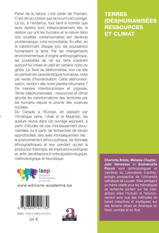 Cet ouvrage aborde les transformations des territoires par les humains depuis le prisme des sciences sociales. Du Canada à l'Europe, en passant par l'Amérique latine, l'Asie et le Maghreb, les auteurs exposent, à partir d'études de cas documentées ou de recherches approfondies, des axes intrinsèquement liés : positionnement éthico-politique, données ethnographiques, la production théorique, implications politiques et, enfin, réflexions d'ordre épistémologique, méthodologique et heuristique.