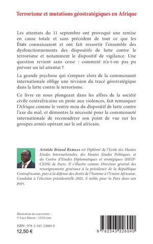 Les attentats du 11 septembre ont fait ressortir l'ensemble des dysfonctionnements des dispositifs de lutte contre le terrorisme et notamment le dispositif de vigilance. La grande psychose qui s'empare alors de la communauté internationale oblige une révision du tracé géostratégique dans la lutte contre le terrorisme. Ce livre en nous plongeant dans les affres de la société civile centrafricaine en proie aux violences, fait remarquer l'Afrique comme le ventre mou du dispositif de lutte contre l'axe du mal, et démontre la nécessité pour la communauté internationale de reconsidérer son point de vue sur les groupes armés opérant sur le sol africain.
