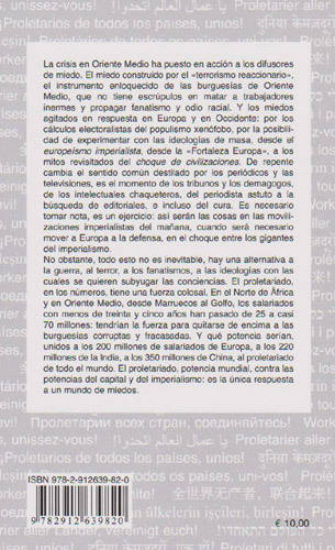 La crisis en Oriente Medio ha puesto en acción a los difusores del miedo. El miedo construido por el "terrorismo reaccionario", el instrumento enloquecido de las burguesías de Oriente Medio, que no tiene escrúpulos en matar a trabajadores inermes y propagar fanatismo y odio racial. Y los miedos agitados en respuesta en Europa y en Occidente: por los cálculos electoralistas del populismo xenófobo, por la posibilidad de experimentar con las ideologías de masas, desde el europeísmo imperialista, desde la "Fortaleza Europa", a los mitos revisitados del choque de civilizaciones.