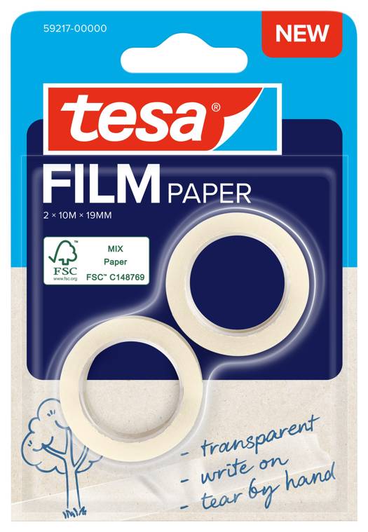 Découvrez le ruban adhésif transparent tesafilm® PAPER - votre contribution à la durabilité. Ce ruban est composé à 67 % de papier, une matière renouvelable (hors mandrin et emballage) - certifié par DIN CERTCO (numéro d'enregistrement : 8C428), un organisme de certification du groupe TÜV Rheinland. Il se déchire facilement à la main et est presque invisible sur les surfaces claires. Le ruban adhésif tesafilm® PAPER est polyvalent, idéal pour emballer des cadeaux, étiqueter ou réparer des pages de livres. Il peut être écrit idéalement avec un marqueur permanent, mais aussi avec un crayon ou un stylo-bille. La qualité se constate par son déroulement silencieux et son adhésion fiable, grâce à un adhésif acrylique à base d'eau. Pour une application précise, il peut être utilisé avec un dérouleur adapté. Le papier certifié FSC® (FSC® C148769) provient de forêts bien gérées, certifiées et d'autres sources contrôlées. De plus, le ruban est certifié selon la méthode INGEDE 12, ce qui confirme qu'il peut être jeté avec le papier et le carton sans entraver le processus de recyclage.