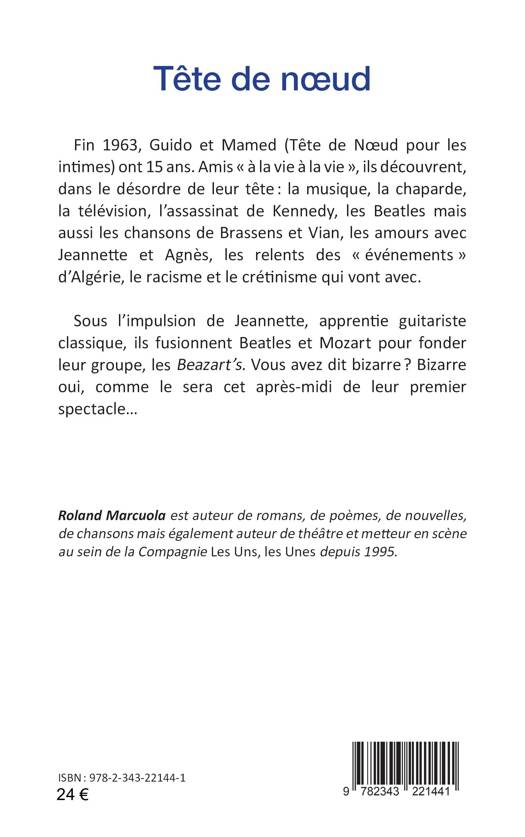 Fin 1963, Guido et Mamed (Tête de Noeud pour les intimes) ont 15 ans. Amis « à la vie à la vie », ils découvrent, dans le désordre de leur tête : la musique, la chaparde, la télévision, l’assassinat de Kennedy, les Beatles mais aussi les chansons de Brassens et Vian, les amours avec Jeannette et Agnès, les relents des « événements » d’Algérie, le racisme et le crétinisme qui vont avec. Sous l’impulsion de Jeannette, apprentie guitariste classique, ils fusionnent Beatles et Mozart pour fonder leur groupe, les Beazart’s. Vous avez dit bizarre ? Bizarre oui, comme le sera cet après-midi de leur premier spectacle...