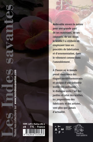 Redevable envers la nature pour une grande part de ses matériaux, de ses colorants, de son décor, le textile l’a célébrée en employant tous ses procédés de fabrication et d’ornementation, dans le vêtement comme dans l’ameublement. À l’heure où le monde prend conscience des risques environnementaux et sociaux d’une industrie textile très polluante, le dialogue entre l’art des jardins et celui des textiles, les propositions des fabricants et des artistes, sont plus que jamais d’actualité.