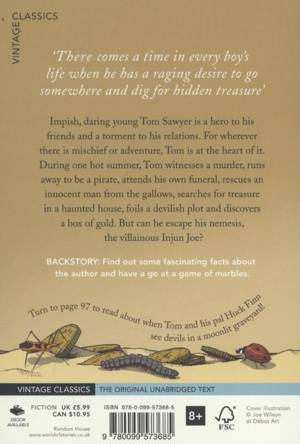Impish, daring young Tom Sawyer is a hero to his friends and a torment to his relations. For wherever there is mischief or adventure, Tom is at the heart of it. During one hot summer, Tom witnesses a murder, runs away to be a pirate, attends his own funeral, rescues an innocent man from the gallows, searches for treasure in a haunted house, foils a devilish plot and discovers a box of gold. But can he escape his nemesis, the villainous Injun Joe?