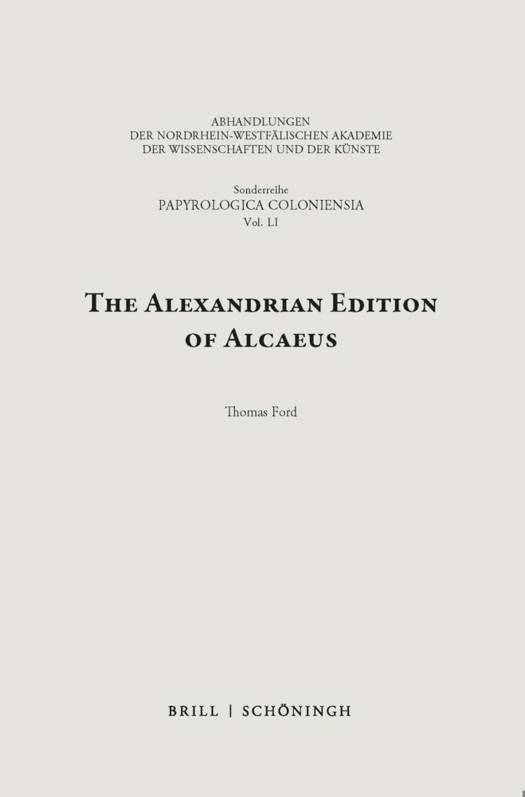 This study provides the most extensive survey hitherto of what is known about the edition of the poetical works of Alcaeus, the soldier, partisan and singer from Lesbos who lived around 600 BC. It considers the evidence of Alcaeus' manuscripts and of references to his work in other sources to try to reconstruct, insofar as possible, the edition of his poems created by the scholars of Alexandria in the 2nd century BC. In doing so, it makes a range of new observations regarding how poetry was edited more generally and how Alcaeus' life was incorporated into his books.