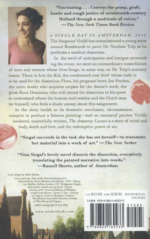 A single day in Amsterdam, 1632. The Surgeons' Guild has commissioned a young artist named Rembrandt to paint Dr. Nicolaes Tulp as he performs a medical dissection. In the swirl of anticipation and intrigue surrounding the event, we meet an extraordinary constellation of men and women whose lives hinge, in some way, on Dr. Tulp's anatomy lesson. There is Aris the Kid, the condemned coat thief whose body is to be used for the dissection; Flora, his pregnant lover; Jan Fetchet, the curio dealer who acquires corpses for the doctor's work; the great René Descartes, who will attend the dissection in his quest to understand where the human soul resides; and the Dutch master himself, who feels a shade uneasy about this assignment. As the story builds to its dramatic conclusion, circumstances conspire to produce a famous painting--and an immortal painter. Vividly rendered, masterfully written, The Anatomy Lesson is a story of mind and body, death and love--and redemptive power of art.