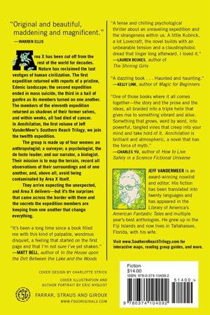 Area X has been cut off from the rest of the continent for decades. Nature has reclaimed the last vestiges of human civilization. The first expedition returned with reports of a pristine, Edenic landscape; the second expedition ended in mass suicide; the third expedition in a hail of gunfire as its members turned on one another. The members of the eleventh expedition returned as shadows of their former selves, and within weeks, all had died of cancer. In Annihilation, the first volume of Jeff VanderMeer's Southern Reach trilogy, we join the twelfth expedition.