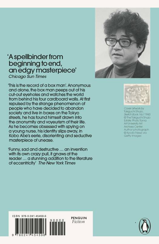 'This is the record of a box man'. Anonymous and alone, the box man peeps out of his cut-out eyeholes and watches the world from behind his four cardboard walls. At first repulsed by the strange phenomenon of people who have decided to abandon society and live in boxes on the Tokyo streets, he has found himself drawn into the anonymity and voyeurism of their life. As he becomes obsessed with spying on a young nurse, his identity slips away, in Kobo Abe's eerie, disorienting and seductive masterpiece of unease.