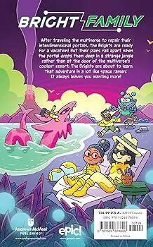 The Brights are back in their second out-of-this-world graphic novel! From Epic Originals, The Bright Family series teaches heartfelt lessons about conflict resolution, cooperation, and the importance of family in all its forms. After searching for each other throughout the multiverse and repairing their interdimensional portals together, the Bright family is ready for a vacation! But relaxing days riding water slides and eating space ramen are put on hold when the portal drops them deep in the jungle on an unknown planet rather than at the door of the luxury resort. The Brights are about to figure out that space travel is a lot like space ramen: It always leaves adventurers wanting more.