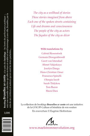 Texte multilingue hors norme qui rend à Bruxelles sa dimension internationale… Des poèmes sur Bruxelles et son ambiance si particulière traduits de l'anglais vers 10 langues/dialectes différents.